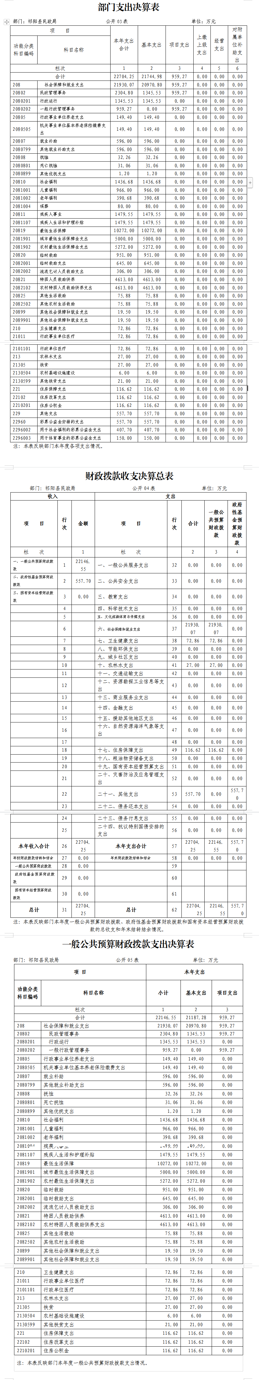 本年支出合计22704.25万元,其中:基本支出21744.98万元,占95.77%;项目支出959.27万元,占4.23%;上缴上级支出0万元,占0%;经营支出0万元,占0%;对附属单位补助支出0万元,占0%。
