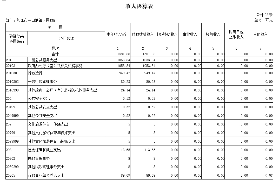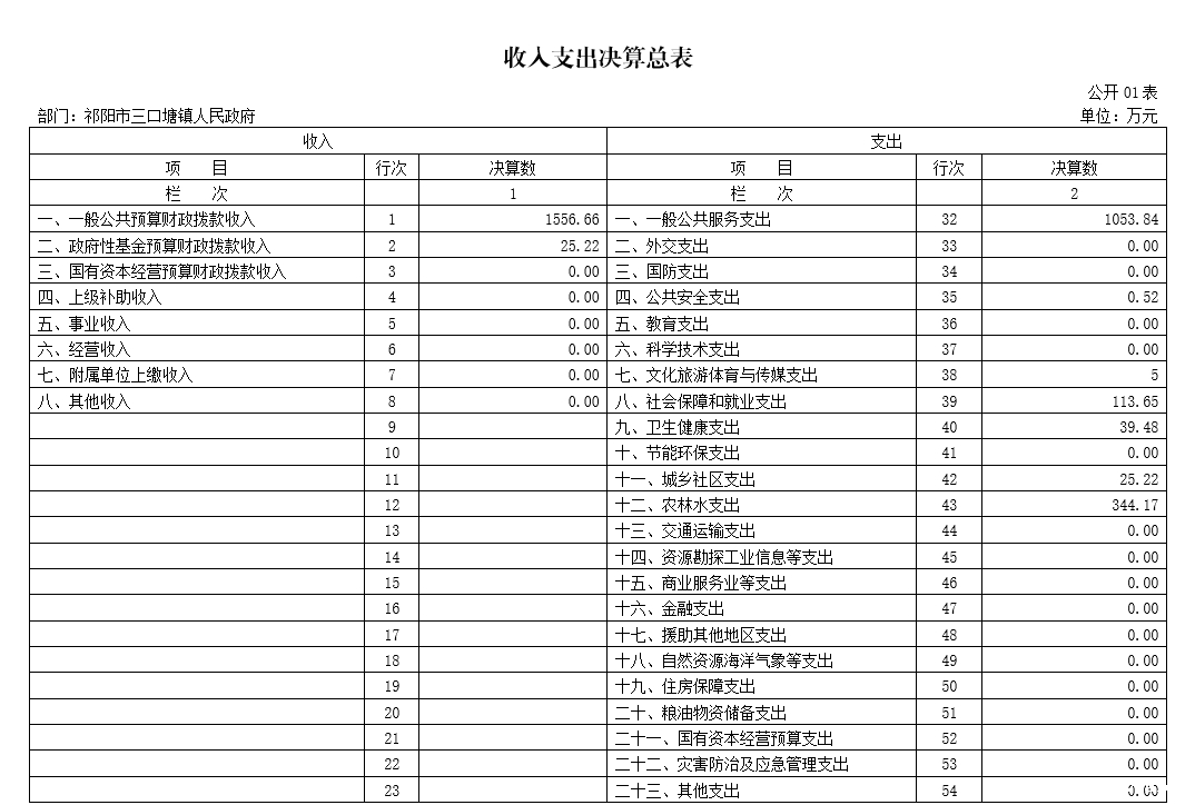2023年kaiyun体育全站网页登录三口塘镇人民政府本级总收入1581.88万元,总支出共计1581.88万元,其中基本支出1476.43万元,项目支出105.45万元。本年度无重点项目支出。