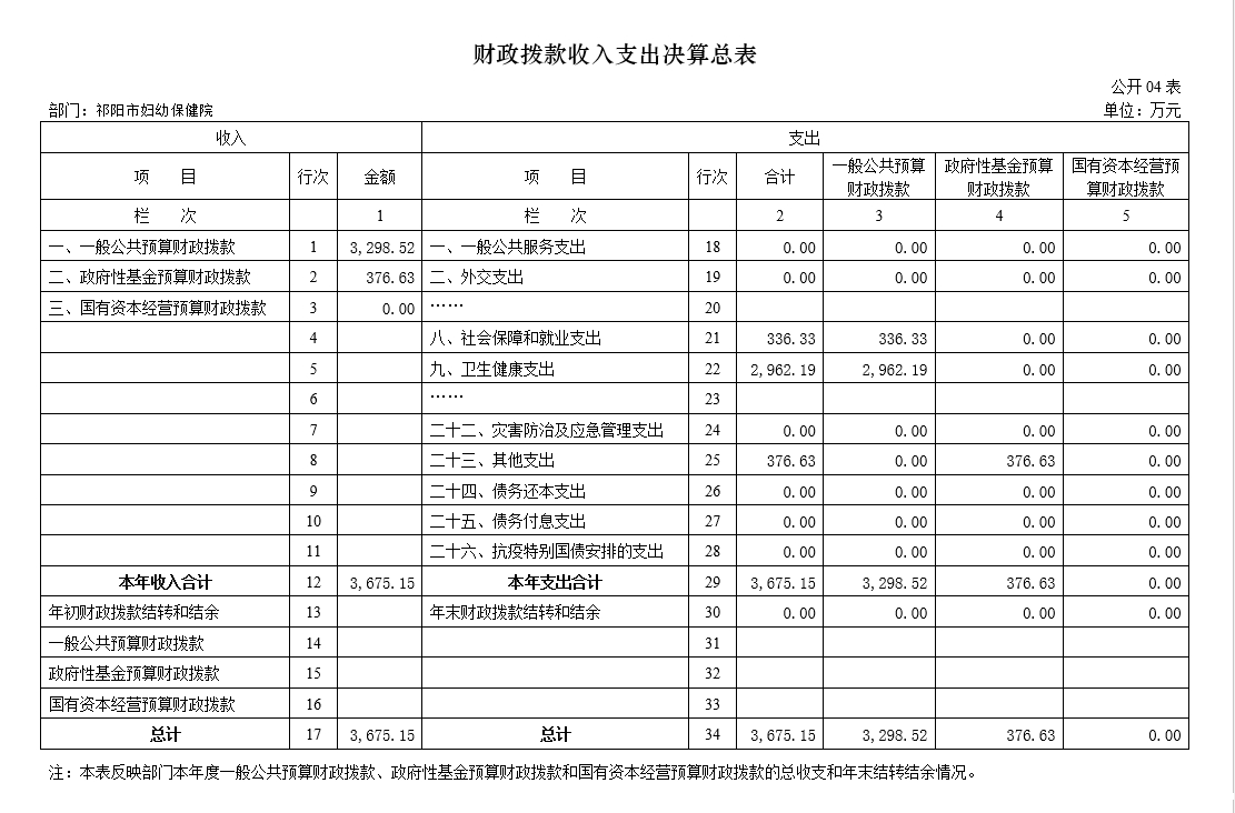 2、卫生健康(类)公立医院(款)妇幼保健医院(项)支出。