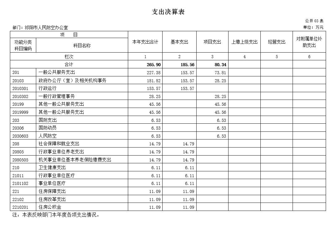 3、一般公共服务(类)国防支员(款)人民防空(项)。