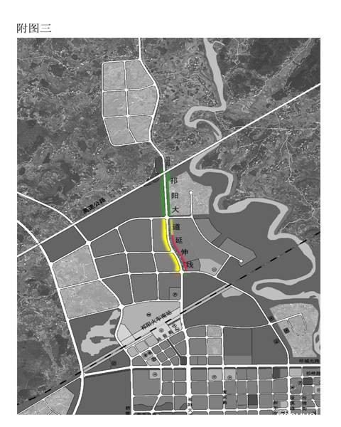 3、启动祁阳大道向北延伸约2公里至官大岭地段的规划设计项目。考虑衡永高速的建设将启动,其在官大岭地段的互通将成为我县进入高速公路的主要入口,有必要尽早启动祁阳大道向北延伸至官大岭地段的规划管理工作。(见附图三)