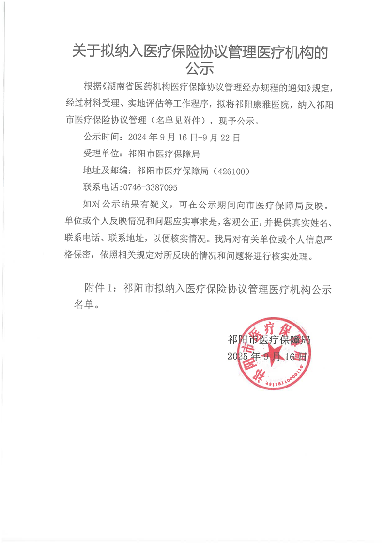关于拟纳入医疗保险协议管理医疗机构的公示