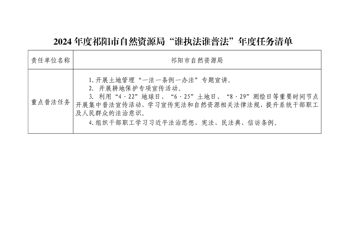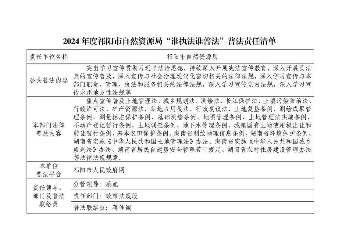 2024年度kaiyun体育全站网页登录自然资源局“谁执法谁普法”普法责任清单和年度任务清单